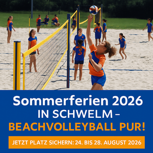 Sonne, Sand und Volleyball – der perfekte Sommermix wartet auch 2026 wieder beim Schwelmer SC! In der 6. Woche der NRW-Sommerferien lädt der Familienverein Schwelmer SC Kinder und Jugendlichen zum großen Beachvolleyball-Camp auf die vereinseigene Beach-Anlage ein.